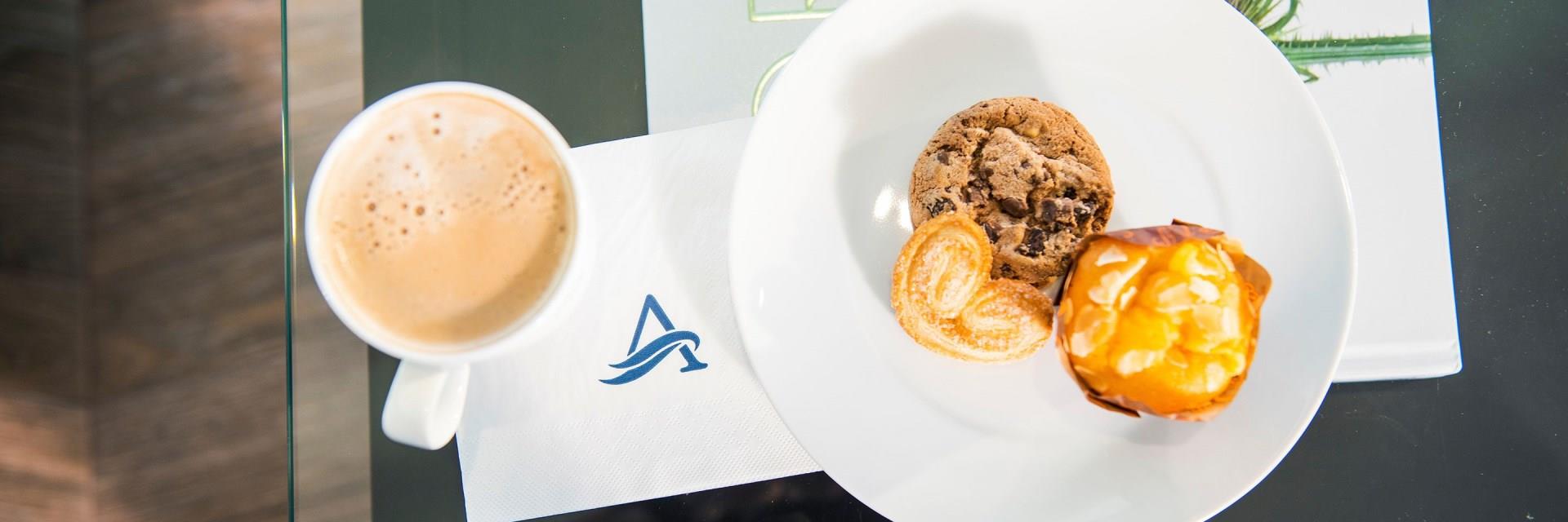 Our cup runneth over with coffees, teas, juices, and treats to power your day and unwind your evening. From lattes to lemonade, Earl Grey to essence-infused water, and cappuccinos to cookies, you’ll find your favorite pick-me-up at your fingertips in our 24/7 Club Lounge.